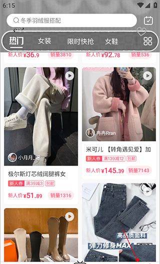 2、男女精品:每日精选更新男女服装销售,时尚鞋包配饰各种超值宝贝。