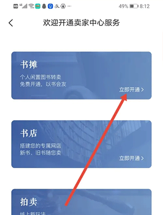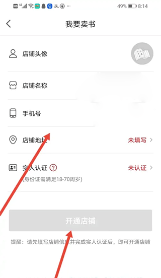 4、来到我要卖书界面,接下来按指示填写资料,然后点击【开通店铺】即可。