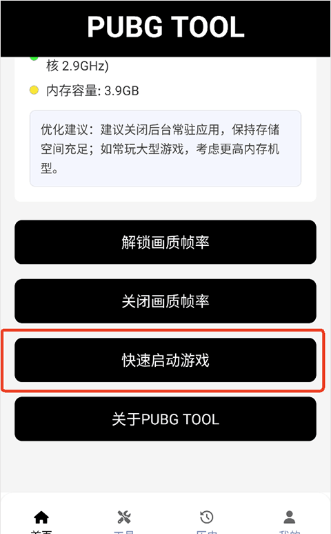 1、在本站下载完软件后,打开进入到主界面点击解锁画质帧率。