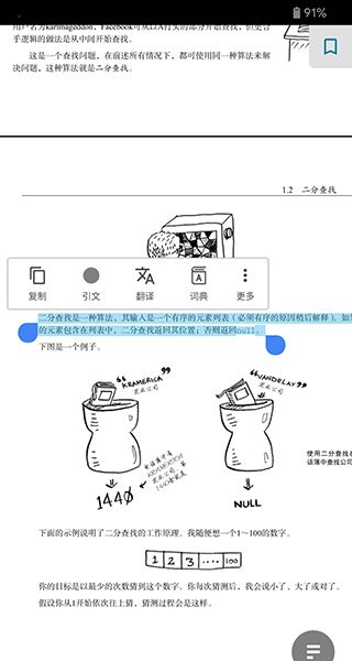 2、进入阅读界面后,可通过双指缩放搭配长按来选中指定的文字