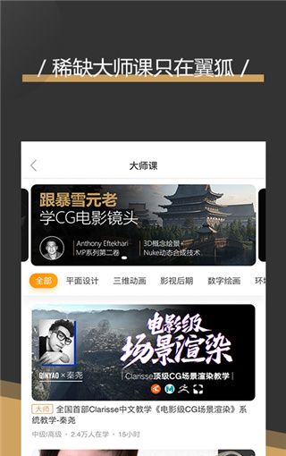翼狐是一款专业强大的工业设计学习辅导软件,软件针对广大用户的学习需求,推出最新最热的学习课程,全面覆盖CG电影、游戏制作、动画制作、工业设计、平面设计等专业领域,满足用户的学习需求。除此之外,这款软件界面简洁,功能强大,汇聚学前咨询、免费试学、课中学习、课后辅导等功能于一体,能够针对用户的基础提供合适的学习方案,旨在带给用户高效的学习体验。