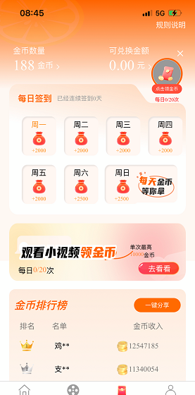 5、完成各种任务可以获得金币,可以快速提现。