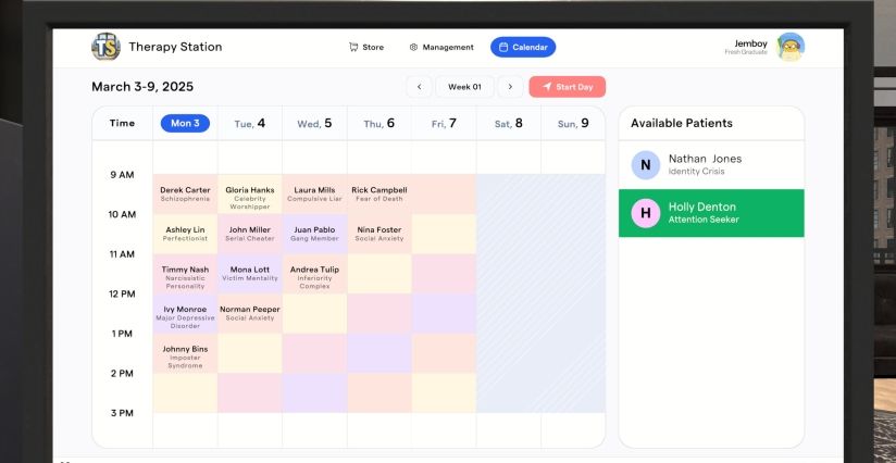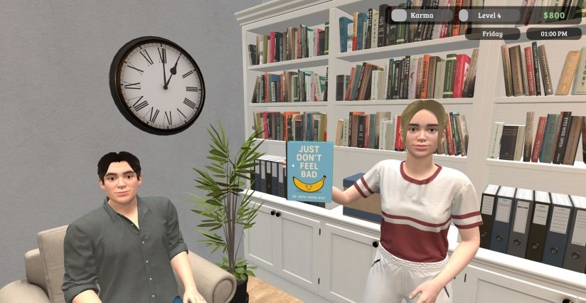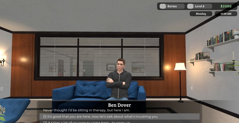 游戏的核心体验在于其叙事驱动的分支对话系统和沉浸式环境。每次会话都围绕一个精心设计的患者故事展开,玩家的选择会直接影响患者的信任度、治疗进展,甚至揭示隐藏的秘密或幽默转折;随着游戏进行,你可以自定义办公室装饰、管理日程安排,并通过程序生成机制获得高重玩性。