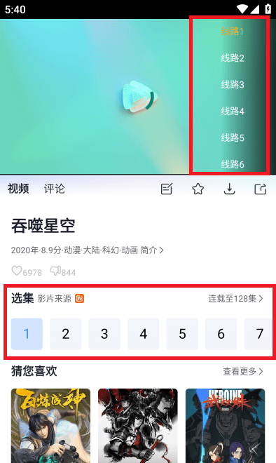 3、如果遇到卡顿可以切换路线,剧集也能在这里选择。