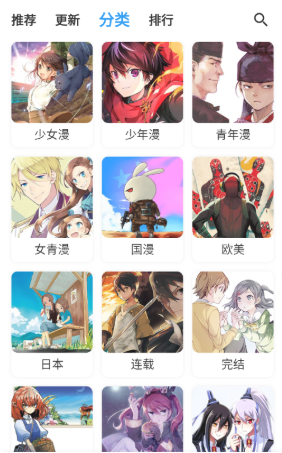 3、分类页面将漫画进行了详细的归类。