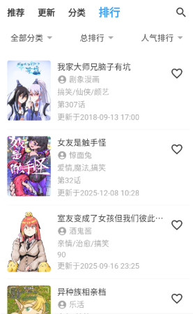 4、排行根据当前热度将漫画进行了排序。