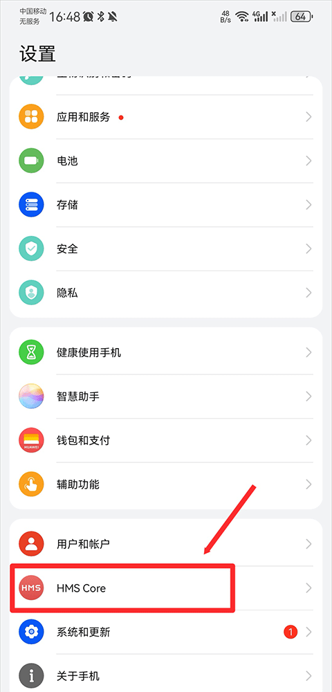 1、HMS Core下载后,打开手机设置,找到HMS Core。