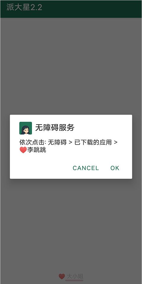 2、点击“OK”后,选择无障碍快捷方式,在“快捷方式服务”内选择“李跳跳”点击开启-确定,即可设置跳广告。