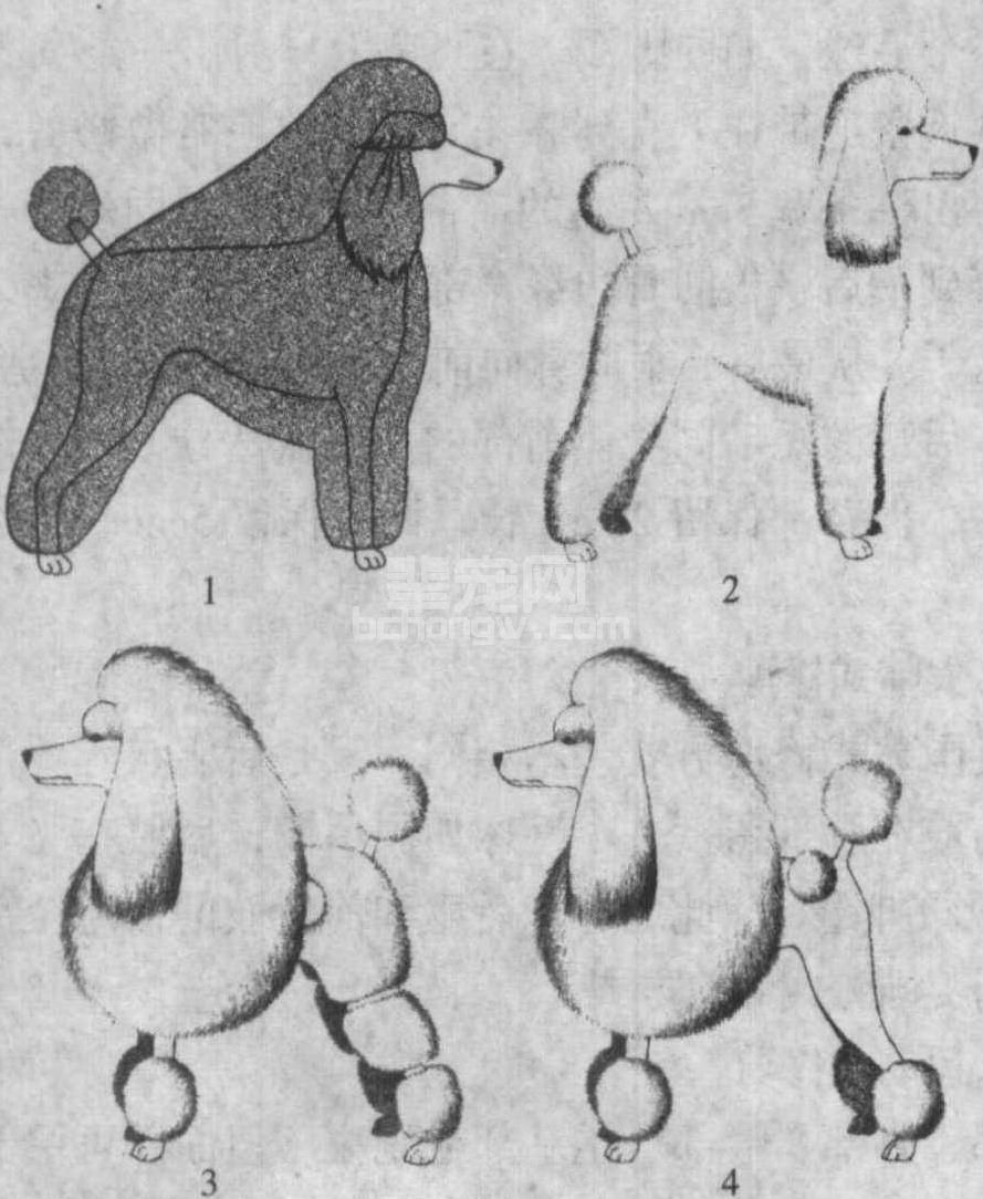 1.幼犬式修剪 2.运动式修剪 3.英国鞍式修剪 4.大陆式修剪