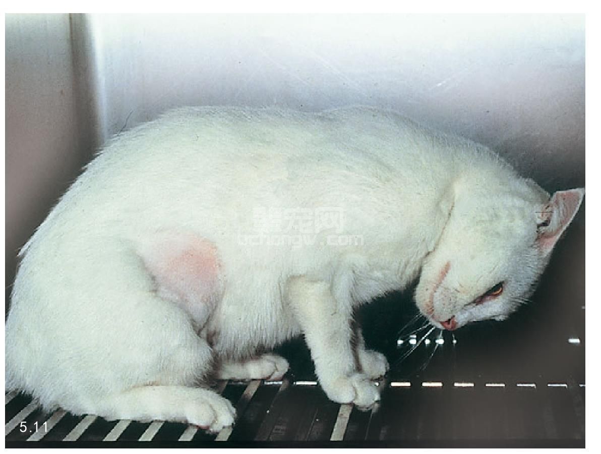 图5.11 猫患严重低钾血症时头颈向腹部弯曲。