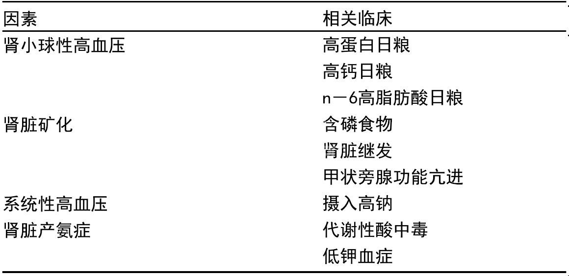 表5.7 导致动物CRF进展的因素