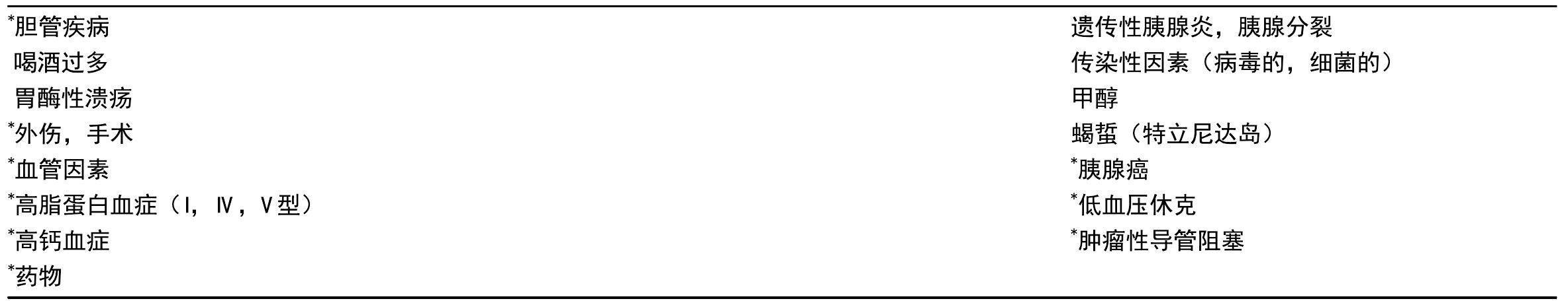 表3.20 人类急性胰腺炎的一些病因