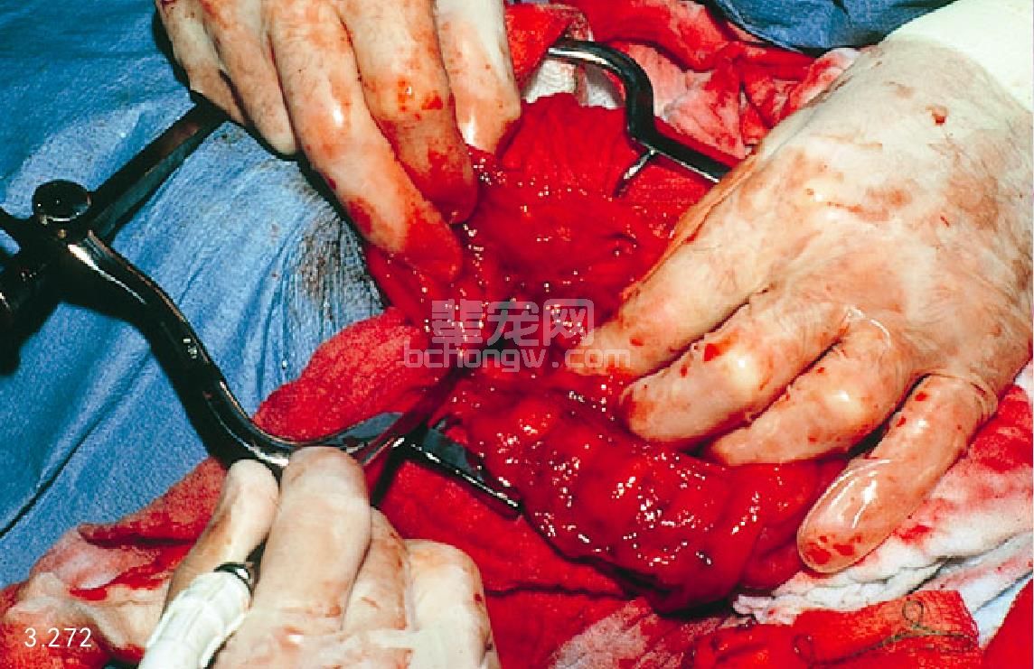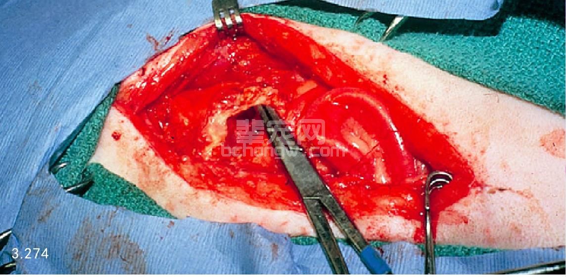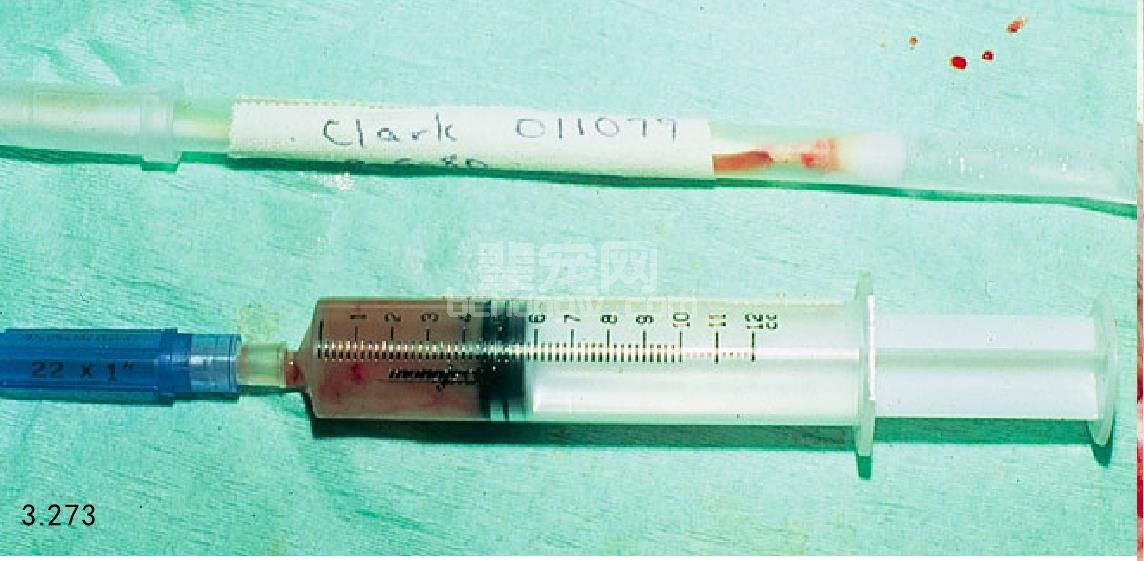 图3.273 图3.272患犬的腔中含有异常多的脓液,从中分离出大肠杆菌。