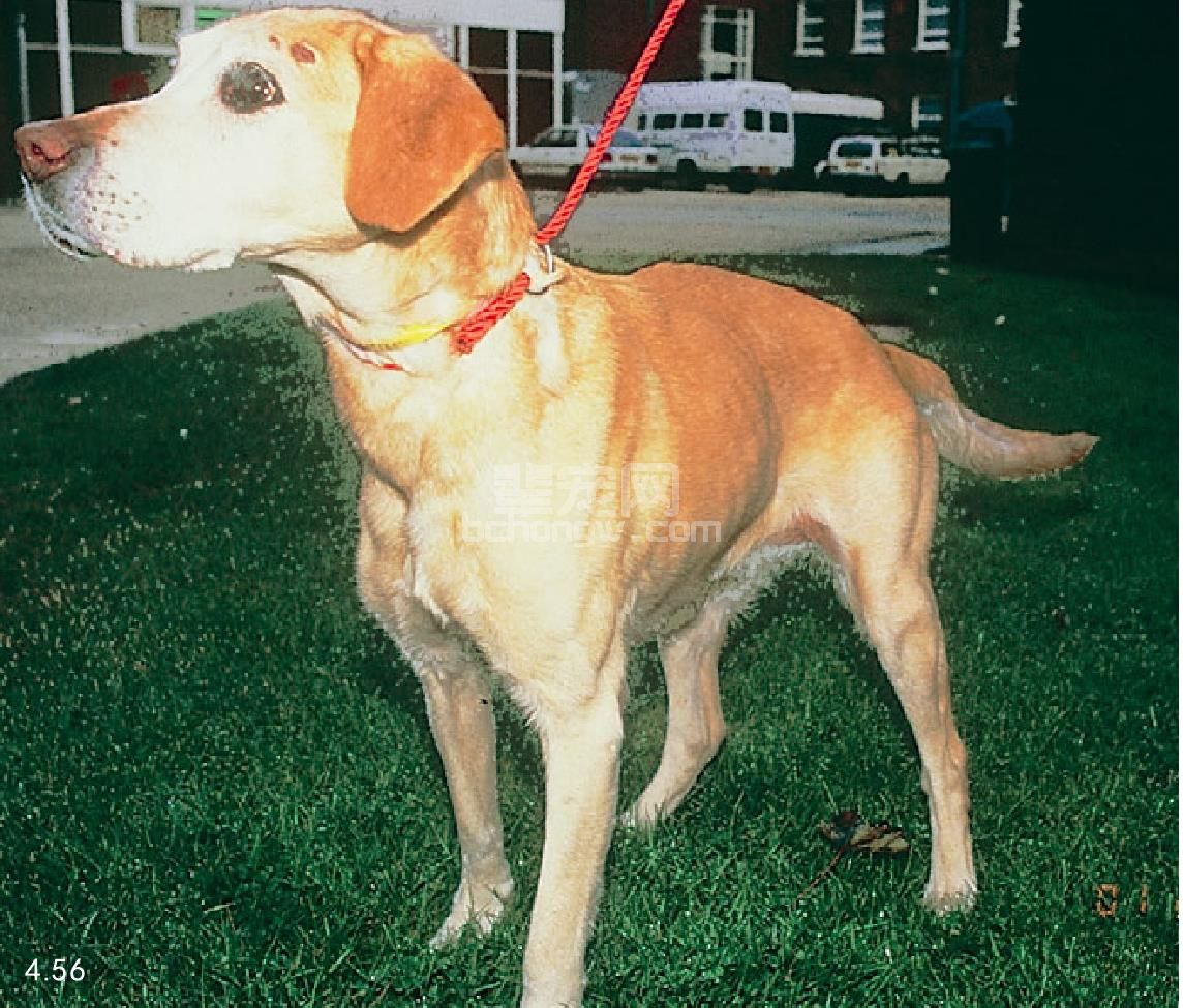 图4.56 12岁拉布拉多猎犬因患糖尿病表现为体重减轻。