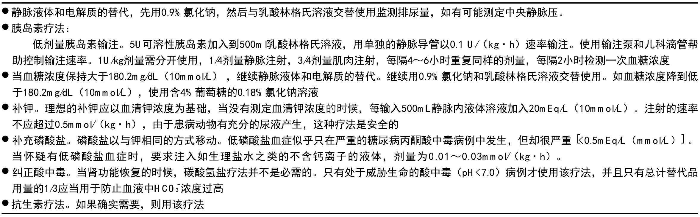 表4.24 犬的糖尿病丙酮酸中毒的治疗方案