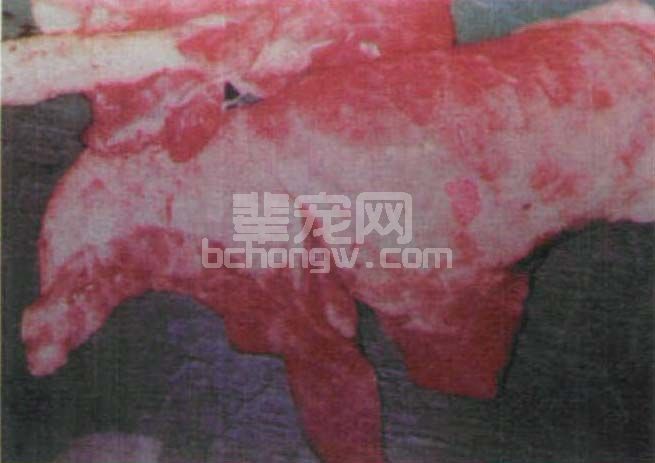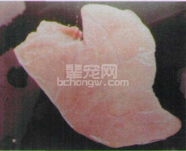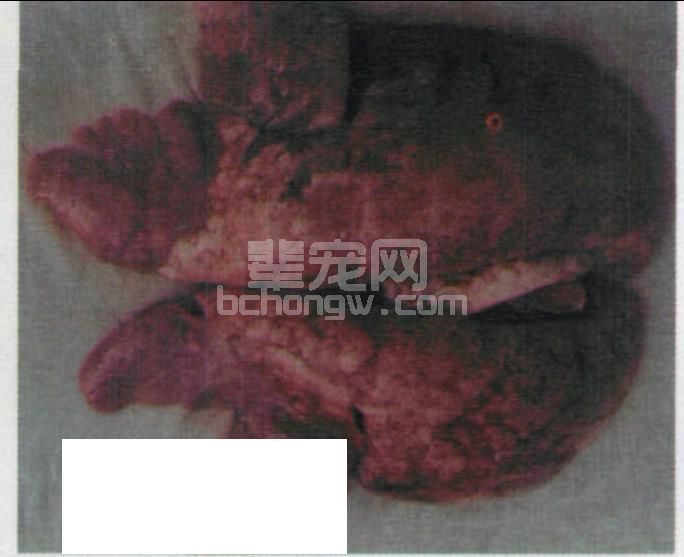 传染性胸膜肺炎:病猪体温升高,全身症状较重,剖检可见有胸膜炎病变。猪气喘病则不然,体温不高,全身症状较轻,肺有肉样或胰样病变,而无胸膜炎病变。