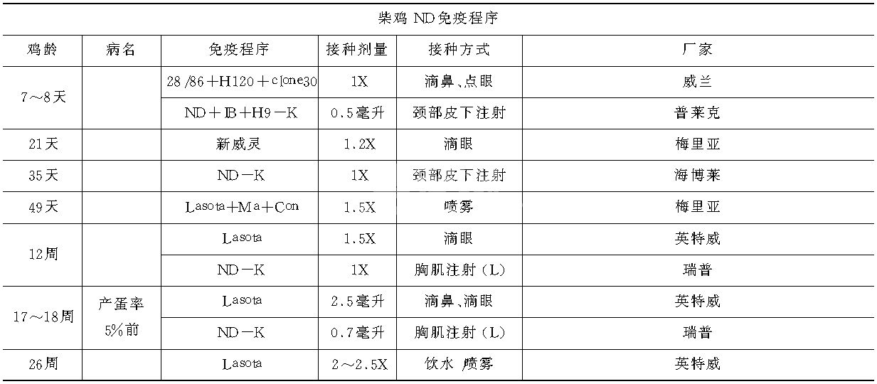 注:26周以后每隔5~6周定期使用lasota或新威灵。各场可根据本场季节实际情况调整
