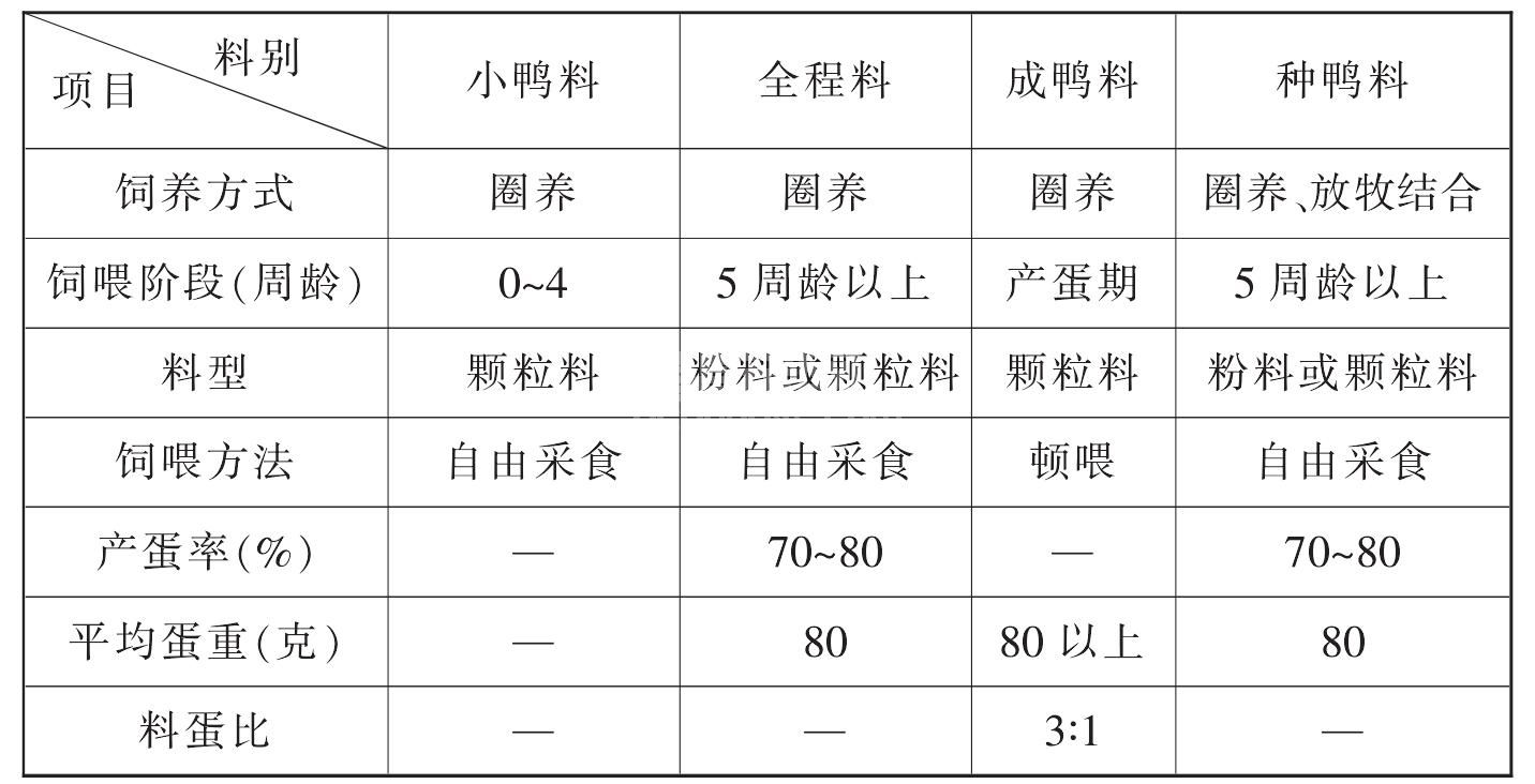 (3)育成鸭的质量育成鸭限制饲养抓得好,就会使得鸭群整齐度高,产蛋前达到标准体重,既不过肥又不瘦削,健康水平高,无腿脚病、瞎眼、偏胯等残疾现象。