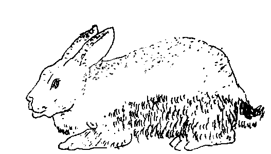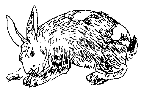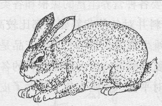 (2) 獭兔的换毛顺序: 獭兔换毛并非一次同时换下,而是经几个月时间,从某一部位开始逐渐向其他部位扩展一点点脱换的。獭兔换毛部位首先从额头开始,其他部位顺序是: 颈部—前胸—背部—两侧—臀部—腹部。未脱换齐的毛皮,可以看到明显的边缘界线,由此可知道距换毛结束的大致时间。一般来讲,腹部换毛完毕,全身平整光亮,便意味着换毛结束。