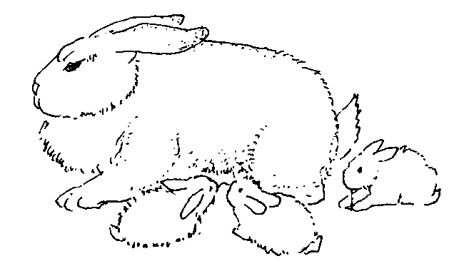 (2) 长毛兔产仔后,要及时用剪刀将其撕下的毛剪短,以免将仔兔缠死。