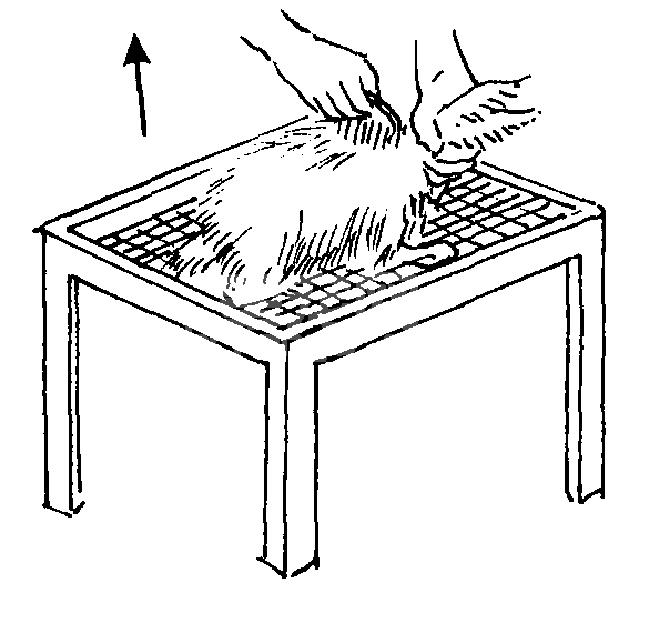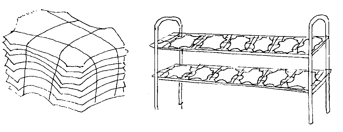 ⑦晾干的兔皮要毛对毛、肌板对肌板打捆入库保管。每捆50张或100张。库房要通风、干燥。要有专门的货架或竹笆条笆堆放,切忌直接放到地上,以免受潮。为了防止蛀虫,要经常喷洒灭害灵和检查晾晒,适时出售或鞣制加工。