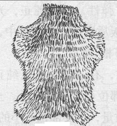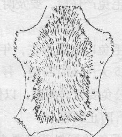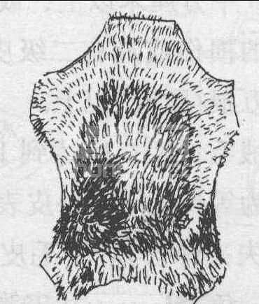 整张皮子鞣制后,四边无毛或毛稀,像一个龟盖,这样的皮很不值钱