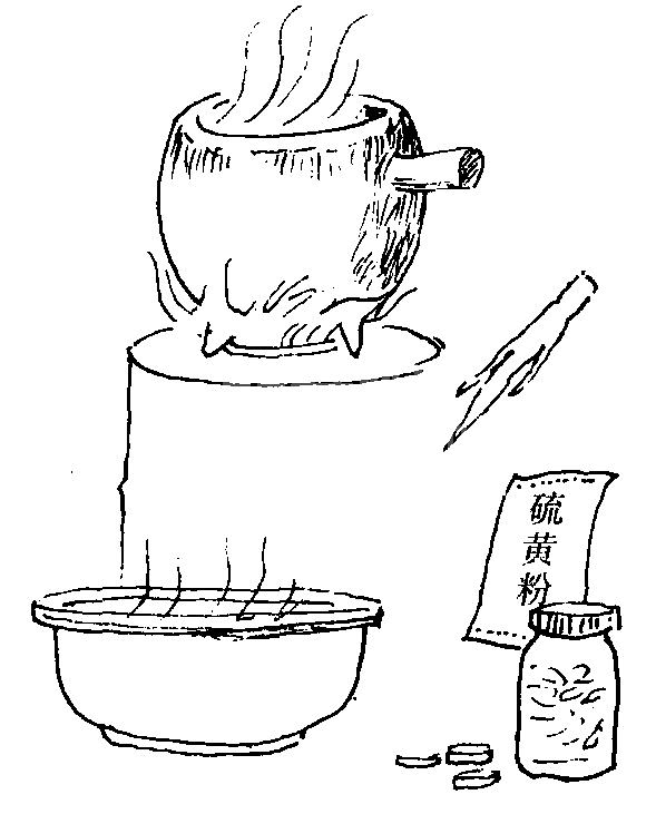 再加硫黄粉15克,敌百虫20克