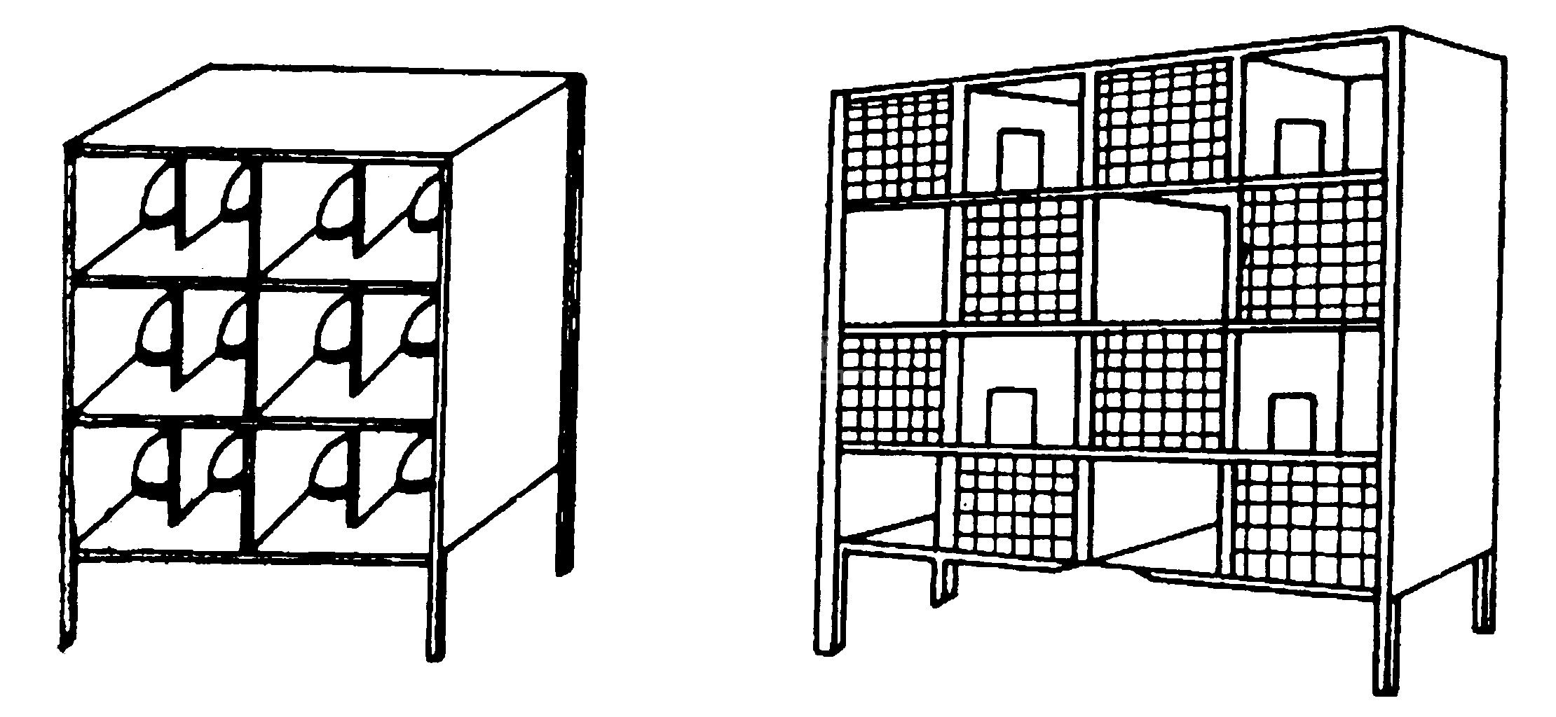 图5 柜式鸽笼(三层) 图6 柜式鸽笼(四层)