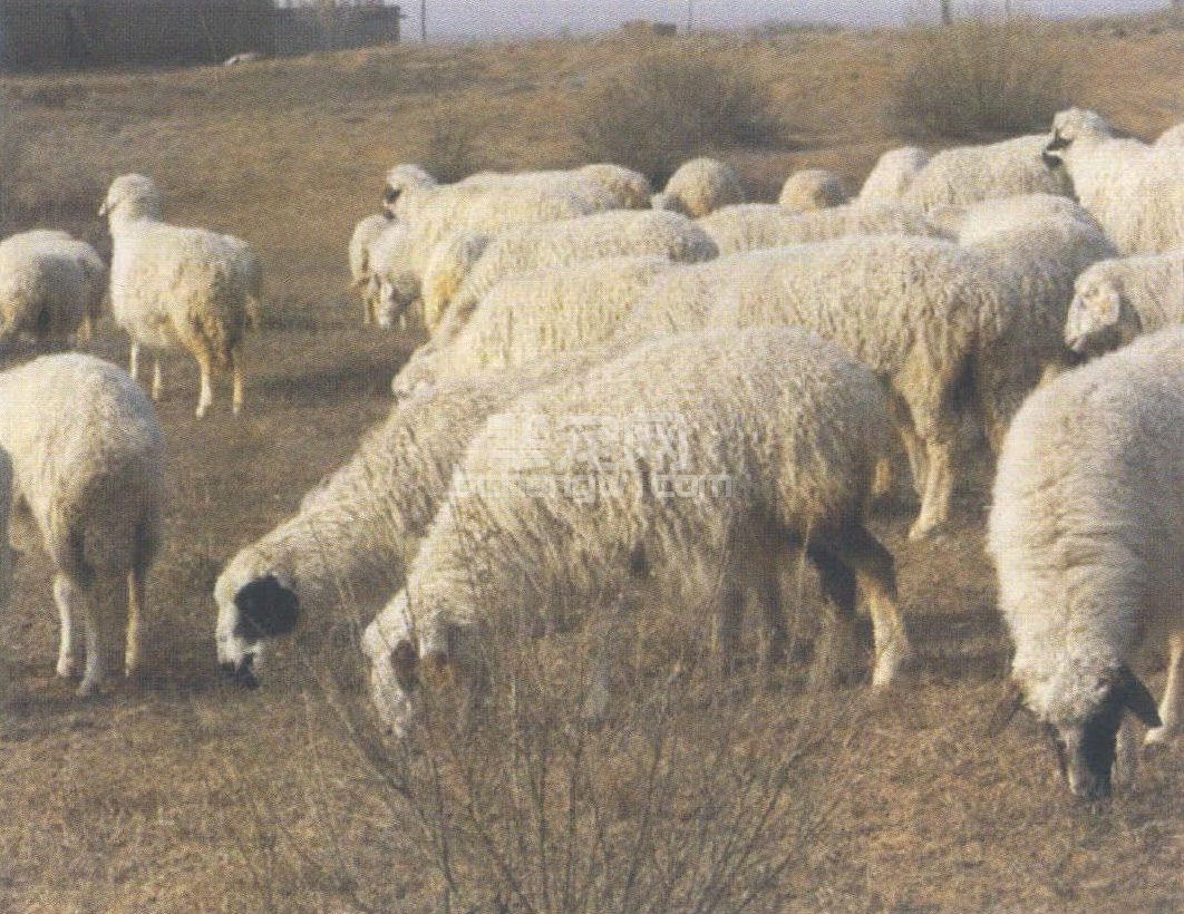 体躯被毛多数为白色,头部和四肢近蹄部处有大小不等的褐、红黑色等杂色斑块,白头者较少,这是滩羊毛色的重要特点。