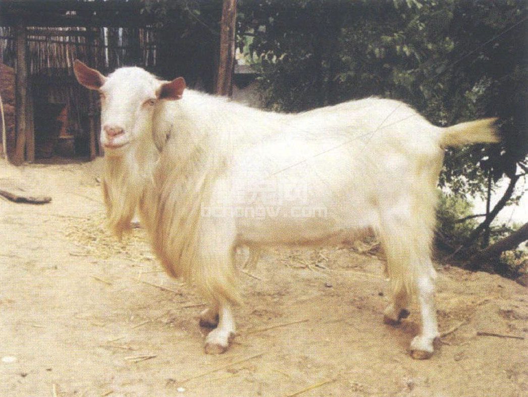 全身被毛刚粗洁白,底绒较少,肤色粉红。按外貌特征分为无角短毛、无角长毛、有角短毛、有角长毛四个类型。短毛型被毛粗细;长毛型肩、侧、股部披有9~17cm长的粗毛。无角短毛型俗称“狗头羊”,是最优类型。