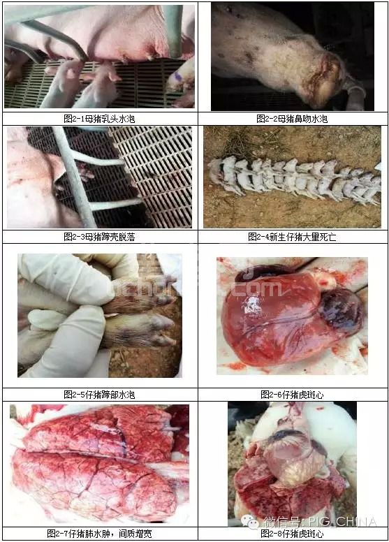 表2-1.母猪和仔猪临床症状及解剖图片