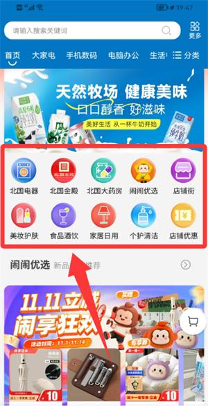 2、在主界面可选择食品酒饮等商品分类,浏览对应专区货品。