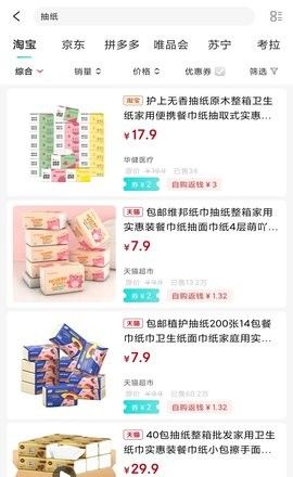 3、你可以根据销量、价格和优惠券等条件过滤出好的产品,帮助你快速找到和购物。