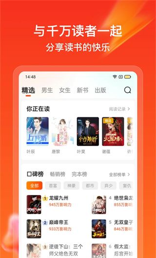 点众快看小说是一个小说阅读平台,精选了大量的小说,包括男女视频、新书、出版物、口碑、畅销书和已完成的作品,提供了流行的类别、主题、人物、情节,故事类型广泛,全文可以离线缓存,即使没有互联网连接,也可以自由阅读,还每天发送受欢迎和有趣的新作品,并配以令人兴奋的图书清单,使发现有趣的内容变得容易;良好的阅读功能设置可以有效满足多个读者的个性化阅读需求,喜欢的伙伴们欢迎下载!
