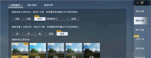4、这里可以将画质提高到极致,也可将帧率调高到120帧。