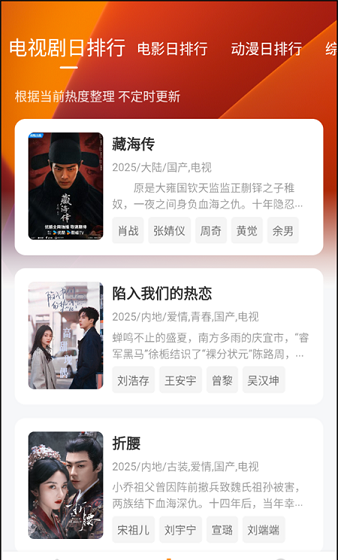 2、在排行榜界面下,我们能够看到一系列实时排行榜,这样有助于我们找到各种宝藏影视作品。