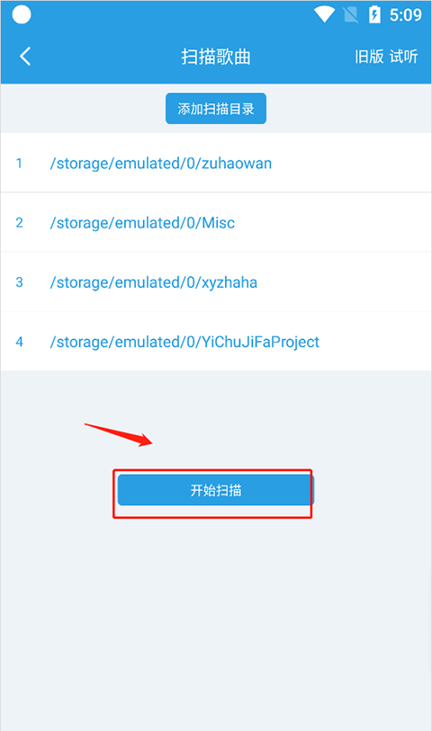 2、在“扫描歌曲”页面上选择“添加扫描目录”按钮。