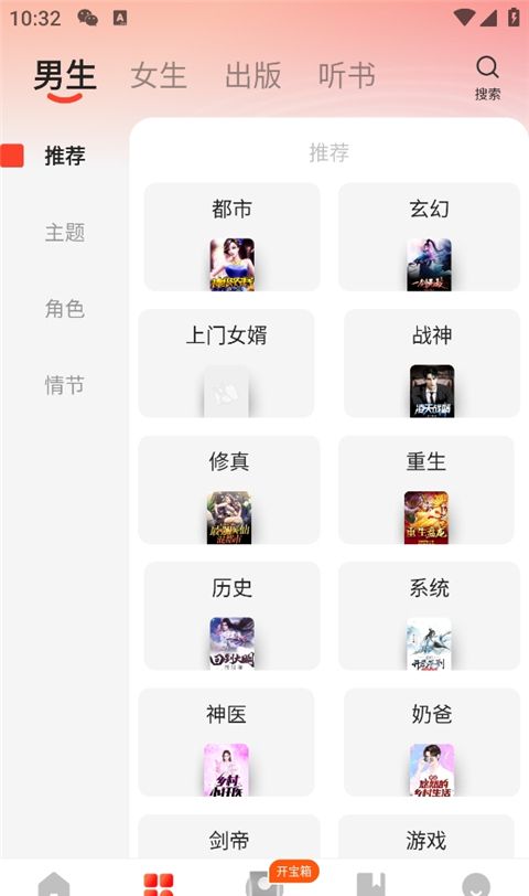 2、在书城界面,有推荐、男生、女生和听书等分类,我们可以选择自己感兴趣的分类,
