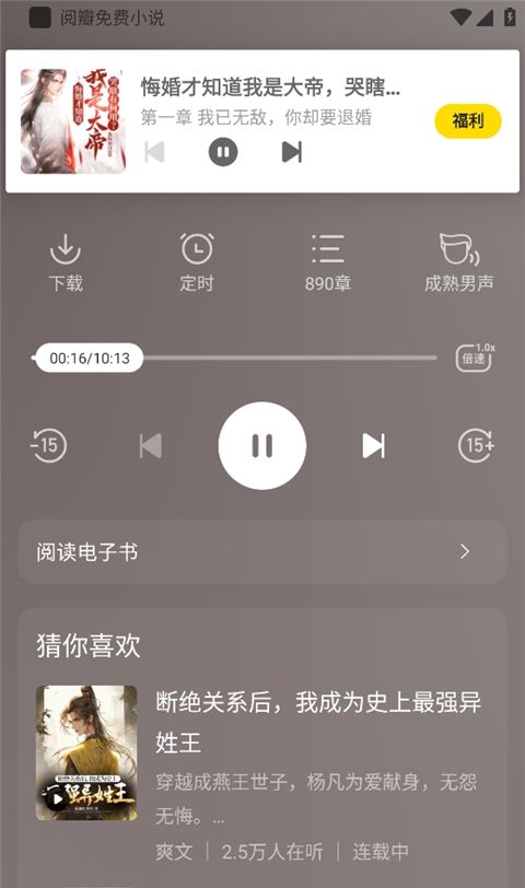 6、如果看累了的话,我们还可以使用听书模式来感受不一样的体验,