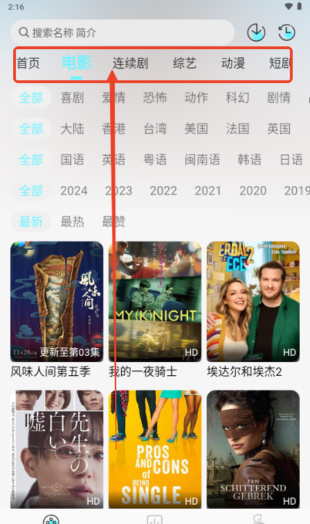 5、点击上面可以切换电影,连续剧,综艺,还有动漫,短剧等内容;