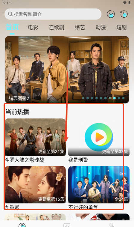 3、到达首页可以查看当前热播影视作品;
