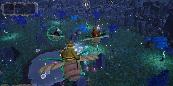 支持3v3团队对抗,玩家需通过“三步施法系统”组合法术——选择法术类型(攻击、召唤、防御)、元素属性及具体技能,例如用火元素释放范围爆炸,或用水元素召唤治疗屏障。超过35种独特法术的自由搭配,考验玩家对元素克制(如火克冰)和战场局势的判断。