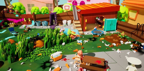 游戏通过拟真物理引擎将家务转化为荒诞冒险,例如垃圾袋可能突然变成弹跳炸弹,或除草机化身“破坏者”。