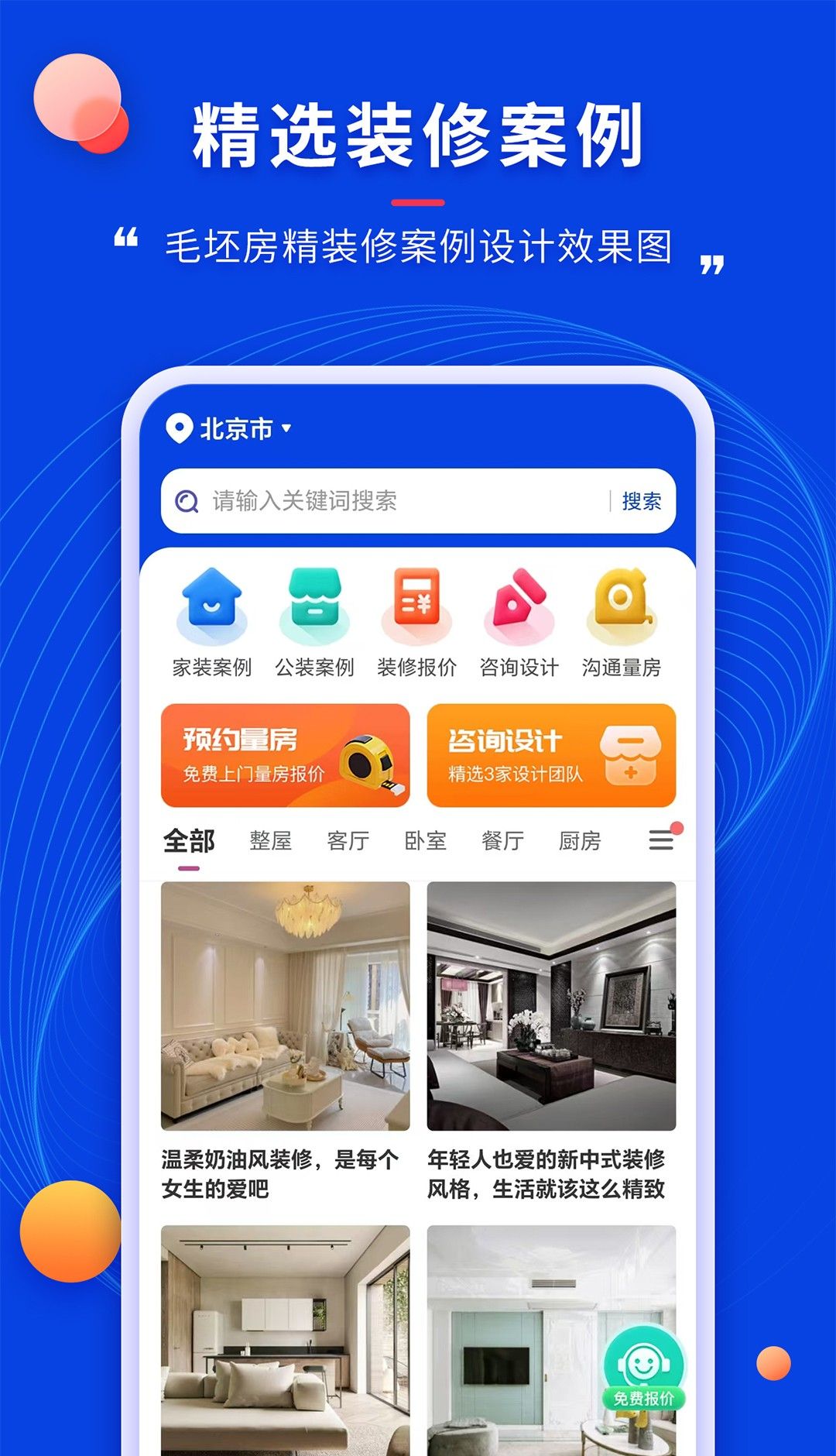 4、在全国众多城市都有家装服务团队,可以为全国的所有用户提供家装服务。