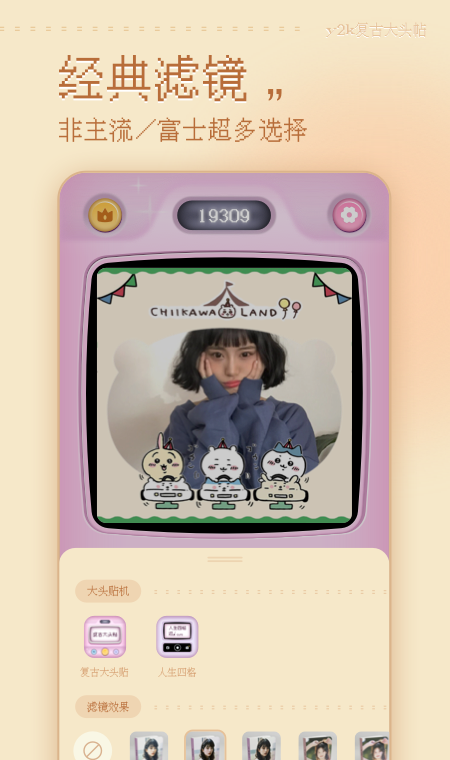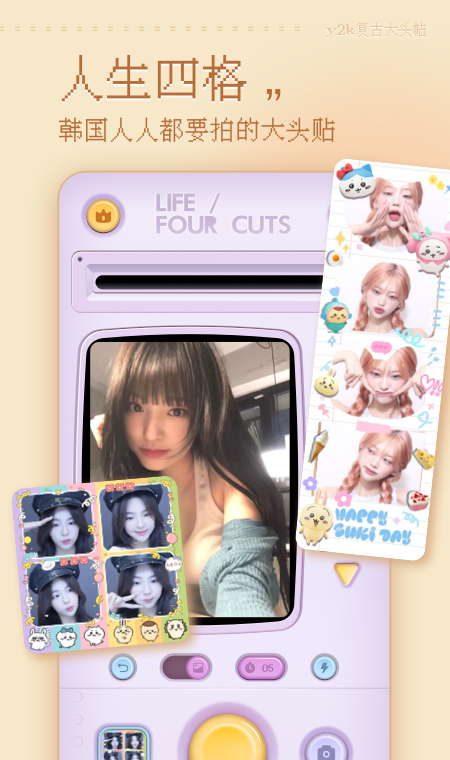 复古大头贴是一款模拟千禧年代大头贴的相机应用,重现了千禧年经典的复古大头贴风格,提供各种贴纸、边框和装饰,使照片看起来更有趣、更具有复古氛围,拍摄大头贴,多种创意大头贴模板,复古风格相机。有大量的自定义表情,各种滤镜和美容功能,魔术表情包,给你不同的新颖照片。支持直接生成大头贴,只需选择照片和相框,即可一键完成制作,并保存或分享给他人。