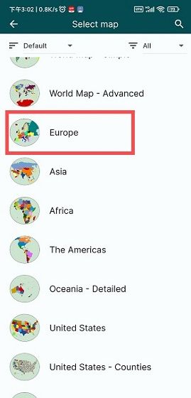 1、打开MapChart app,点击creat map选择像编辑的地区或者城市地图。