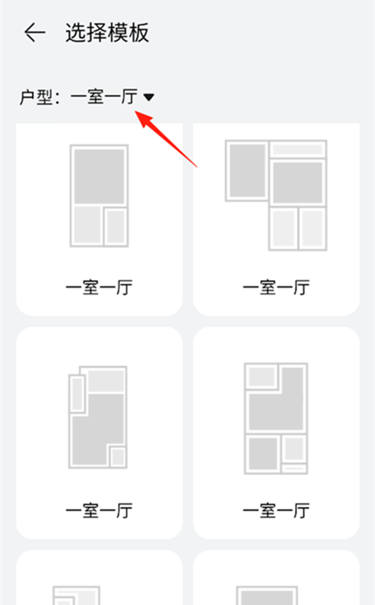 6、点击左上角的“一室一厅”,选择户型。