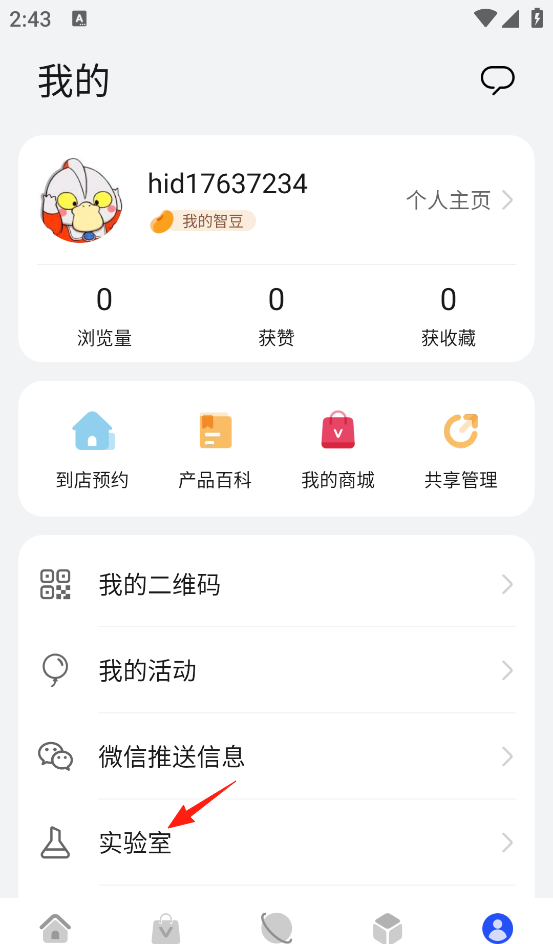 2、点击屏幕下方的“实验室”。