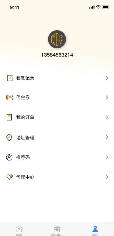 5、在个人中心就能查看历史套餐、代金券、订单等信息,还能管理地址。