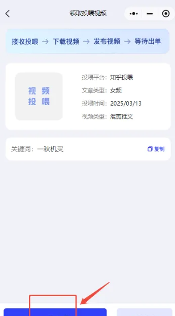 2、点击“ 投喂视频领取”。